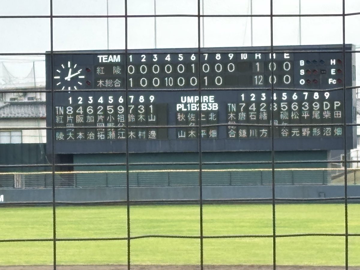 令和7年度南部大会 決勝 袖ケ浦市営球場 7回表終了 拓大紅陵1 対 12木更津総合 pic.x.com/gP6J3aJ3YB