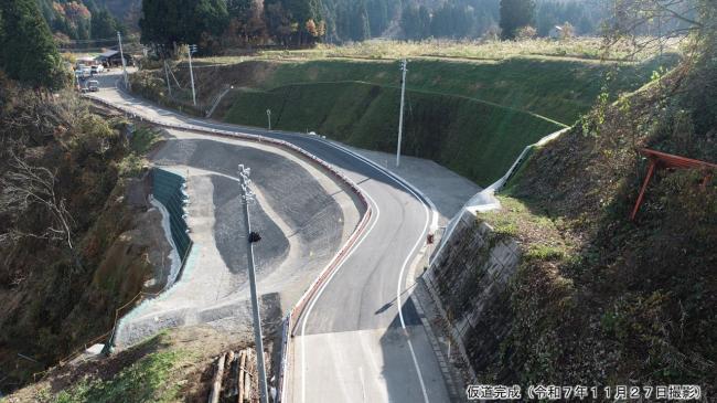 \松代高柳線(柏崎市高柳町門出地内)の通行止めを本日(11/28)解除しました/ R7/3/26 に発生した道路崩落により通行止めを実施してきましたが、仮道が完成し、本日(11/28)13時に通行止めを解除しました なお、全面的な復旧完了は令和8年夏頃を予定しております 👇 pref.niigata.lg.jp/site/kashiwaza… pic.x.com/e6H5AeWvRk