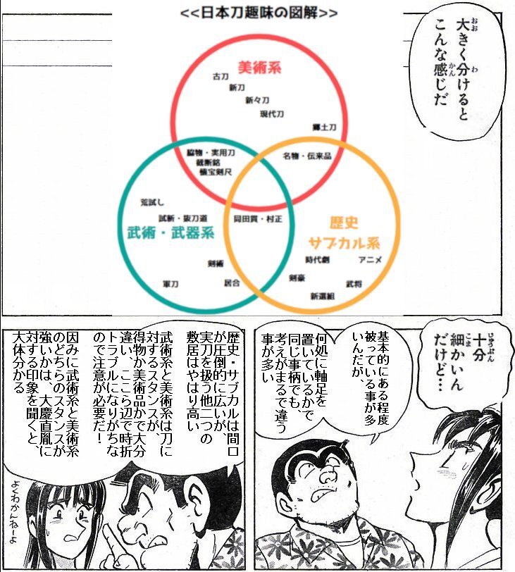 刀趣味って包摂する対象が広すぎて、一方で詳しい人がもう一方でも詳しいかというとそうでもないんですよね 私は軸足は美術系だけど、武器としてのそれにも興味があるのでいろいろ調べてますが、歴史的な方はそうでもないので武将の佩刀とかはそんな詳しくない x.com/samanokami0122…