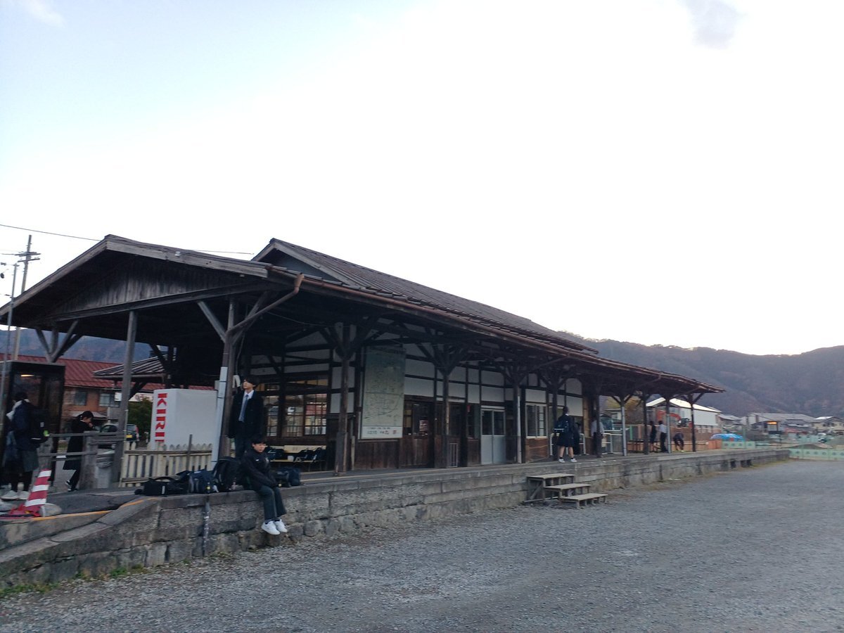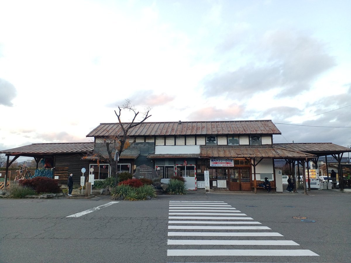 旧長野電鉄松代駅 駅舎が今年中に取り壊されると聞いていたので日が沈む前に覗いてきました。高校生がたむろする駅舎まわり。金曜の放課後のゆるい雰囲気。トラス構造の庇が特徴のレトロ木造駅舎でした pic.x.com/auhj9jrYlG