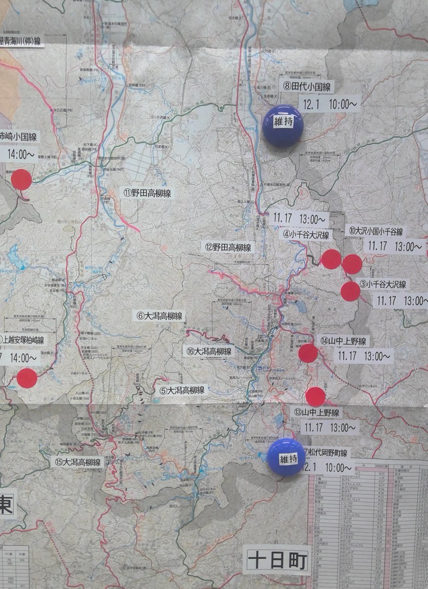 交通情報(冬期通行止め情報:#新潟県 管理区間)】 以下の箇所(青)が12/1(月)10時から冬期 #通行止 めとなります (赤の箇所はすでに通行止めの箇所です) 田代小国線 1箇所(石川峠) 松代岡野町線 1箇所(栃ケ原) 新潟県通行規制情報はこちら niigata-kotukisei.jp/regulation?are… #柏崎市 #道路情報 pic.x.com/l82Ss5Nc88