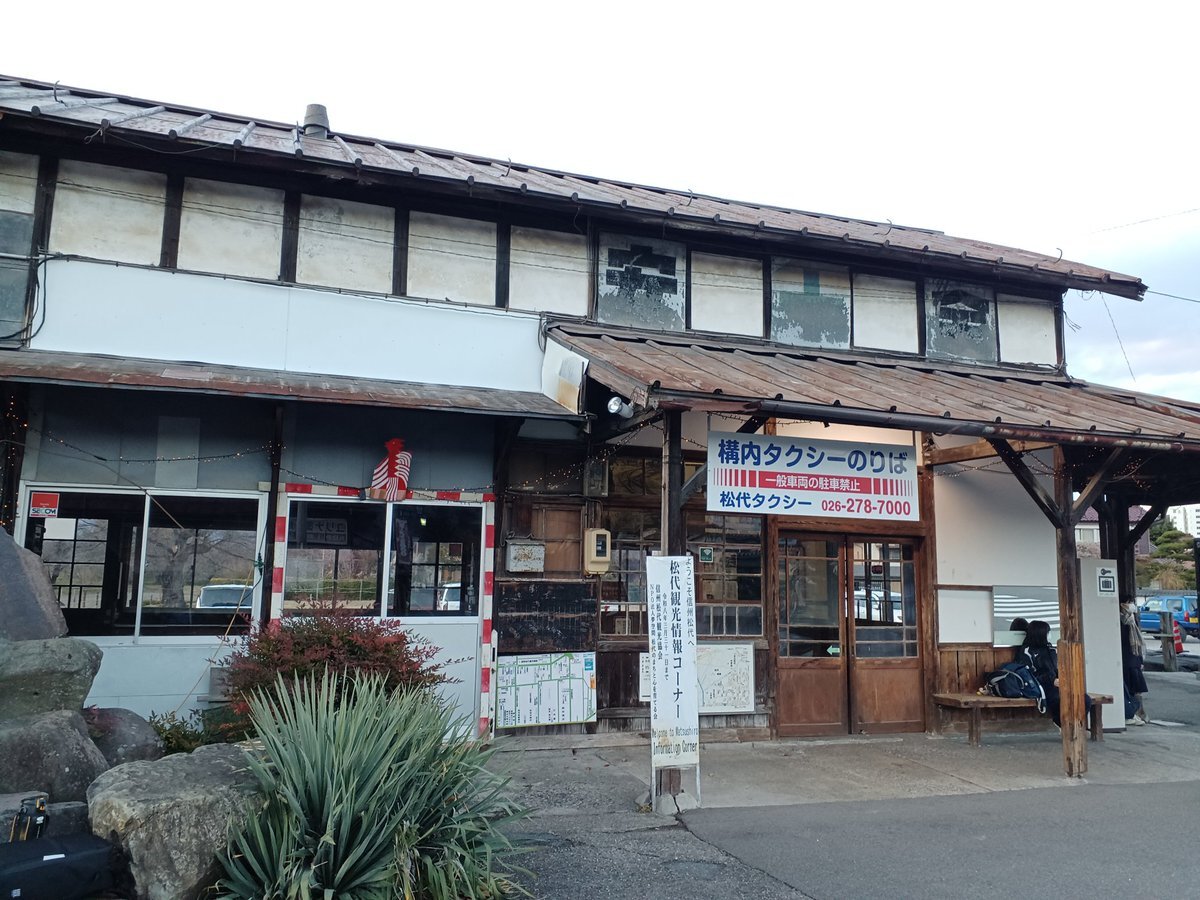 旧長野電鉄松代駅駅舎。廃線後は市の所有。取り壊しの予算がついたところで俄に反対の声があがり動きがとまっているらしい。かといって活用するには耐震工事が必要。この建物がなくなるとバス待ちの高校生が寒風に晒されることにもなるのです pic.x.com/FzRV2d8SOP