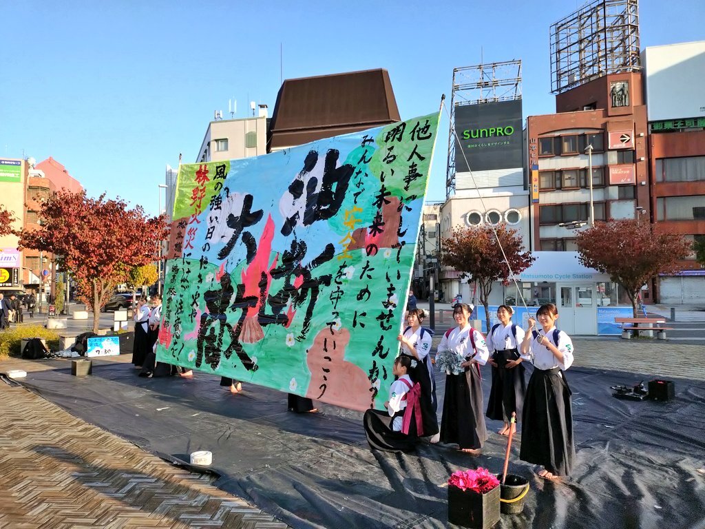 本日これより北帰行 松本駅まで嫁さんに送ってもらうと、ちょうど秋の火災予防運動とのタイアップで松本蟻ヶ崎高校書道部の可愛く元気なパフォーマンス。駅そばチャージして、いざ出発。 2025-11-7 松本駅 pic.x.com/iIInpnlWDm
