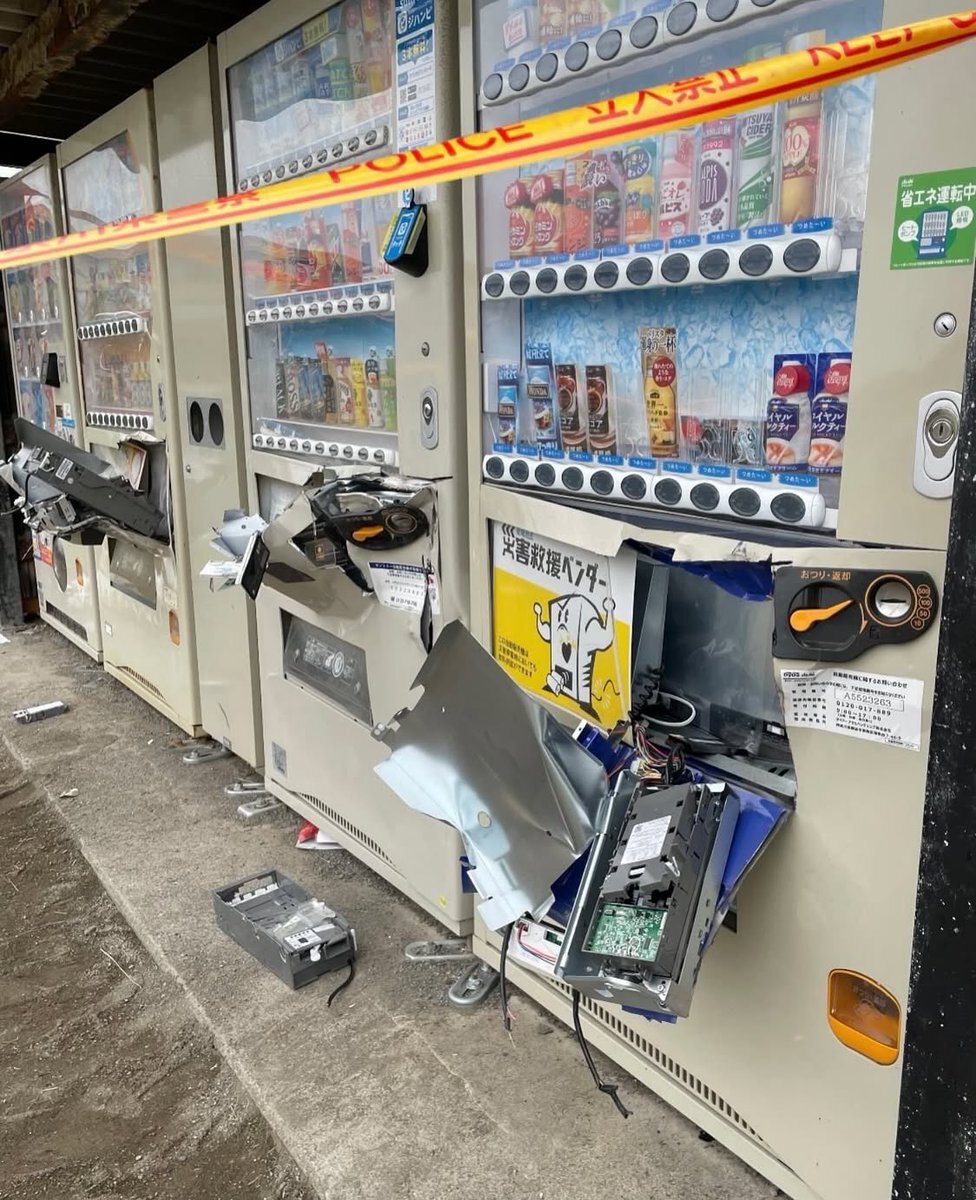 移民が増えると自動販売機も当たり前のように置けなくなるよ。 車も盗まれ、分解され売られる 危機感持てよ日本人‼️