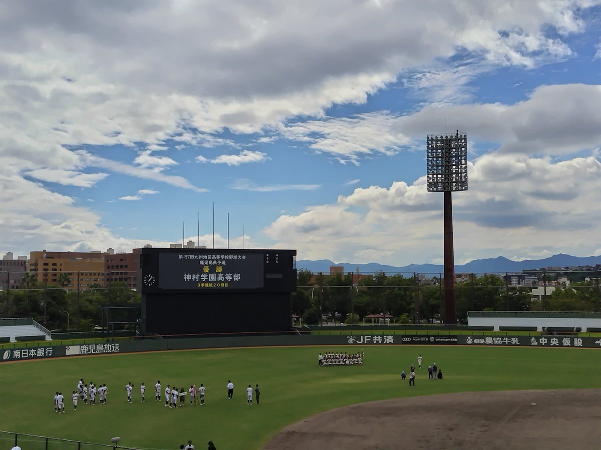 先月19日の、市民球場での樟南第二と鹿児島水産との開幕戦から始まった今大会も今日の決勝戦をもって全日程を終えました。一試合でも多く球場に足を運び、試合の行方を伝える事が出来て良かったです🎵😊 九州大会で勝ち進み、春のセンバツ出場が叶う事を心から願い、球場からお別れします。では👋 pic.x.com/zyazPyye9L