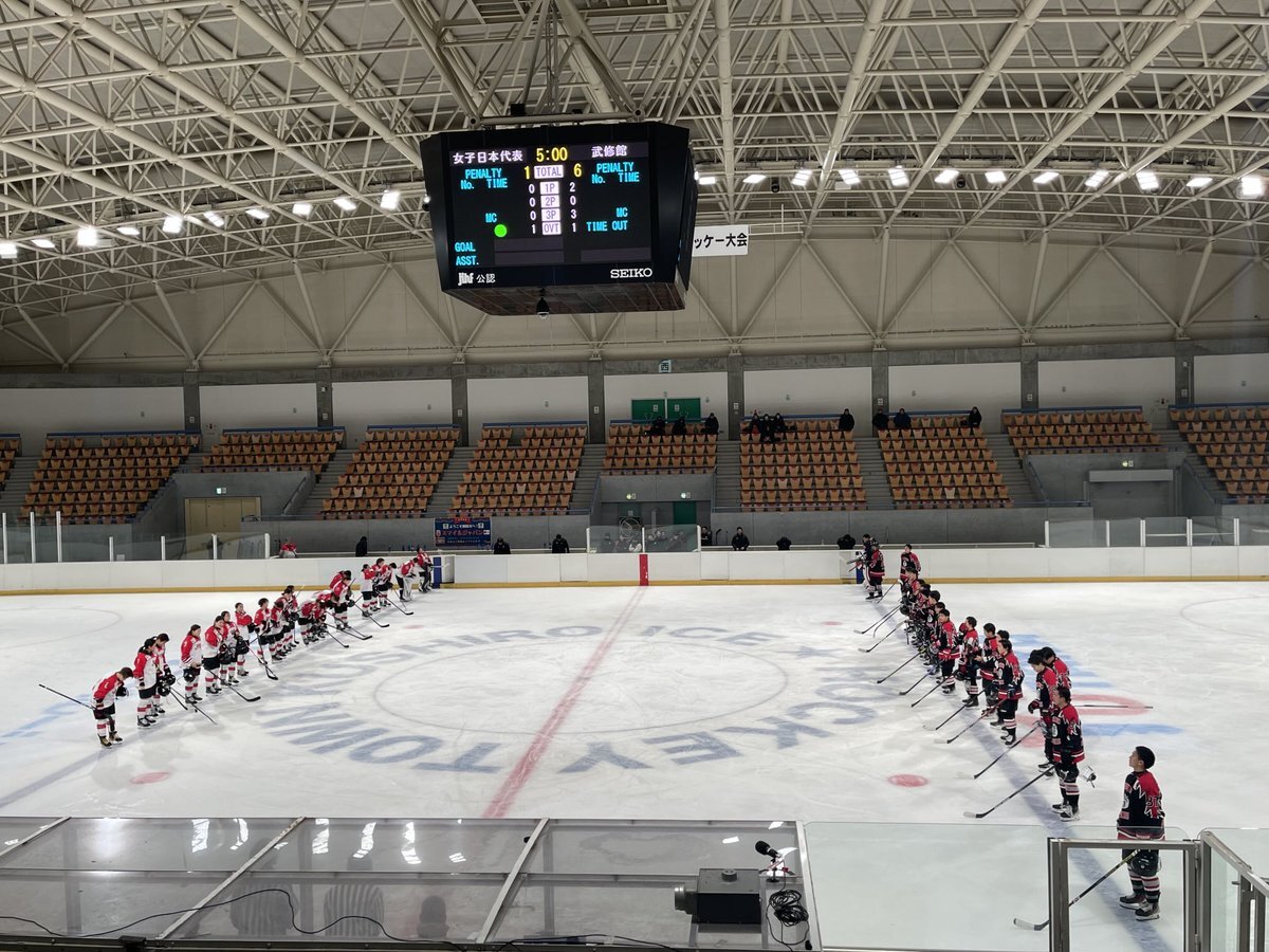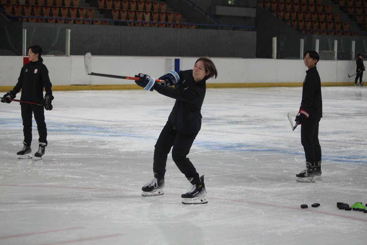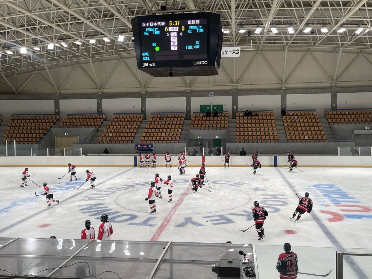 女子日本代表🆚武修館高校 ただ今練習中です。 予定の16時開始が約2時間遅れに 変更されました。 #スマイルジャパン #アイスホッケー #ユタカアイスアリーナ pic.x.com/1wSW0JFwJ7