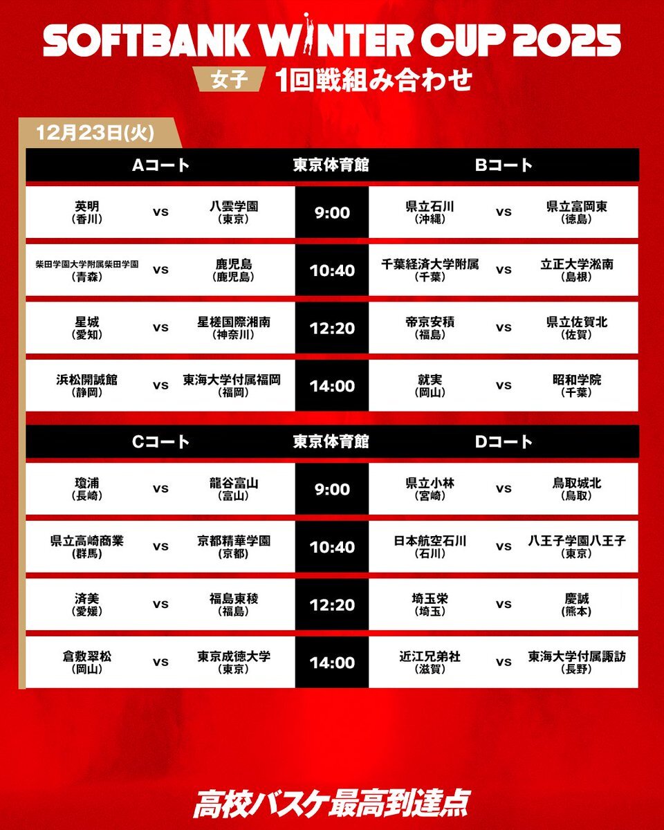❄️SoftBank ウインターカップ2025 📆男女1回戦の組み合わせはこちら! 🔽大会公式サイト🔽 wintercup2025.japanbasketball.jp #ウインターカップ #高校バスケ最高到達点 #高校バスケ