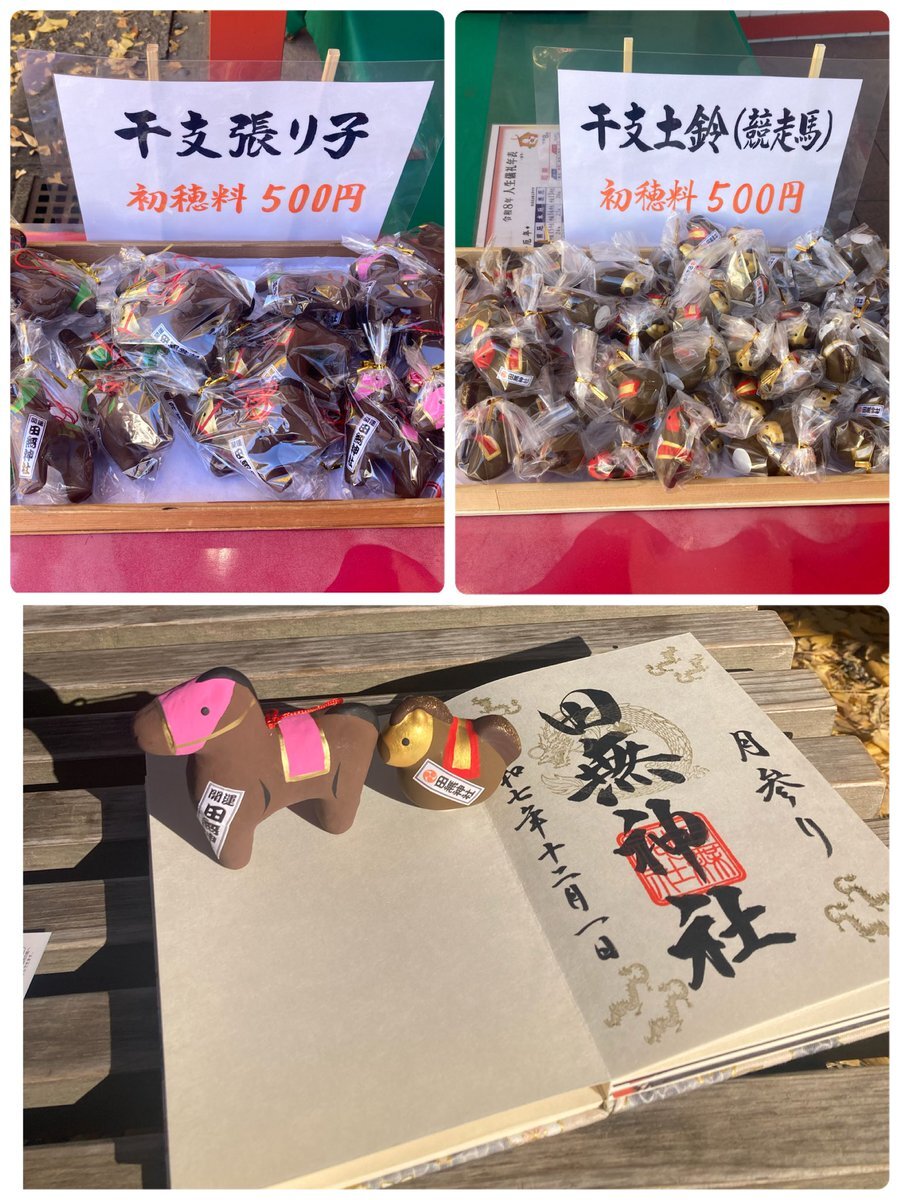 今日は朝1番に氏神様の 西東京市の田無神社さんに参拝⛩️ 今日から頒布の来年の馬の授与品、 おみくじっぽいですが 干支の張り子と土鈴として頒布していて一体ずつお迎えしました♪ 競走馬らしくかっこいい🏇 御神木の銀杏は落葉、絨毯になっていました 御朱印も拝受♪ #御朱印 #田無神社 pic.x.com/HGYKqGEn3N