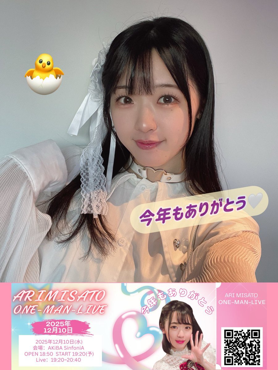 【亜利美里🐥ワンマン予定】 12/10(水) 亜利美里ONE-MAN-LIVE ~2025もありがとう~ 📍会場:AKiBA SinfoniA ⏰時間:Open 18:50 Start 19:20 💰料金:各1D別 ☆プレミアム特典付きチケット4,000円 ☆ 通常チケット1,900円 🎟️t-dv.com/ari2025last12-… RPも♡もして欲しいな😊 寝る前にぴぴっとぜひ☝🏻 pic.x.com/dnkSZ35fkP