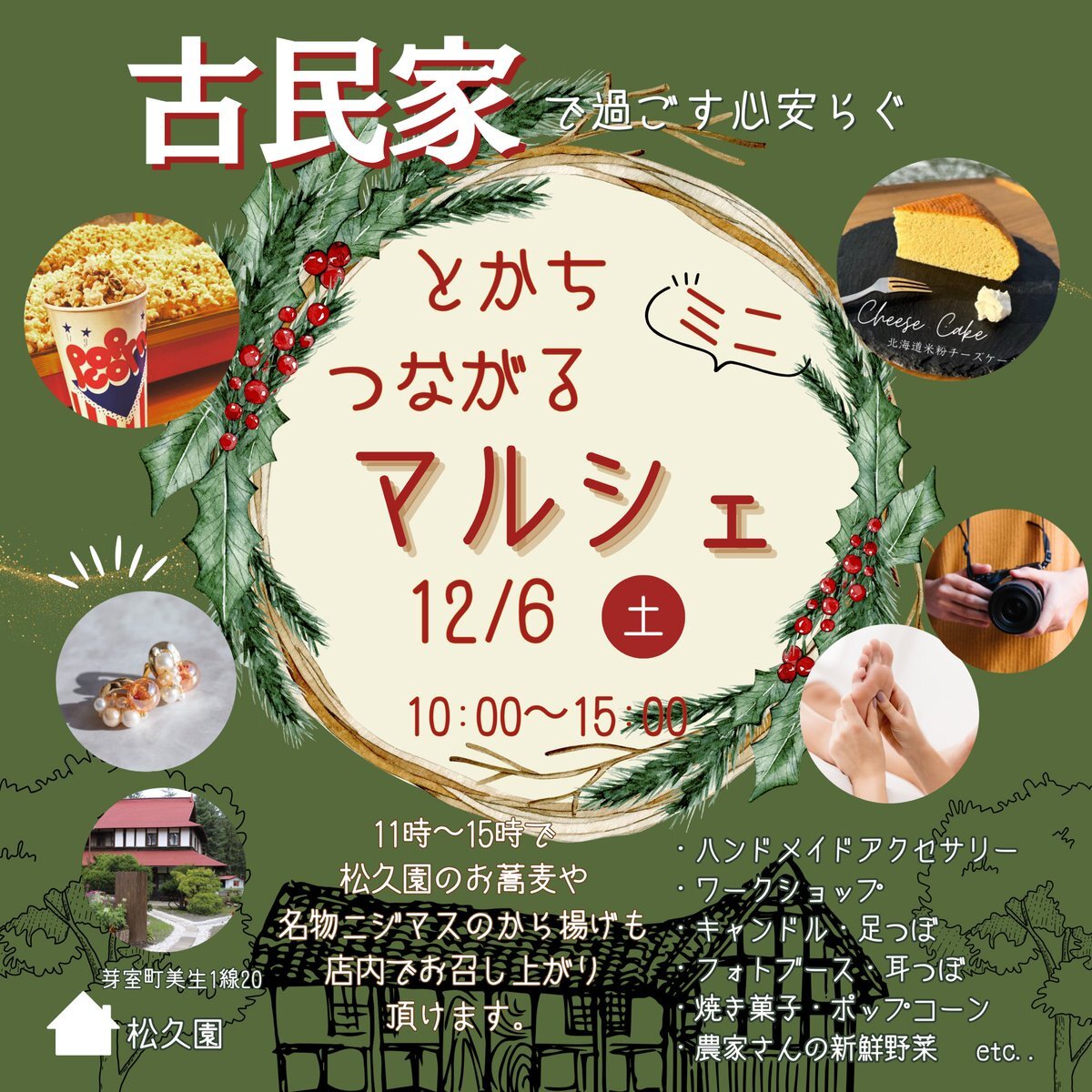 12月6日 芽室の松久園さまにて とかちつながるミニマルシェ開催します🎄 自然豊かな古民家で過ごす 心安らぐクリスマスマルシェに…🤍 皆さまのお越しをお待ちしております!! pic.x.com/nzef7P0mCx