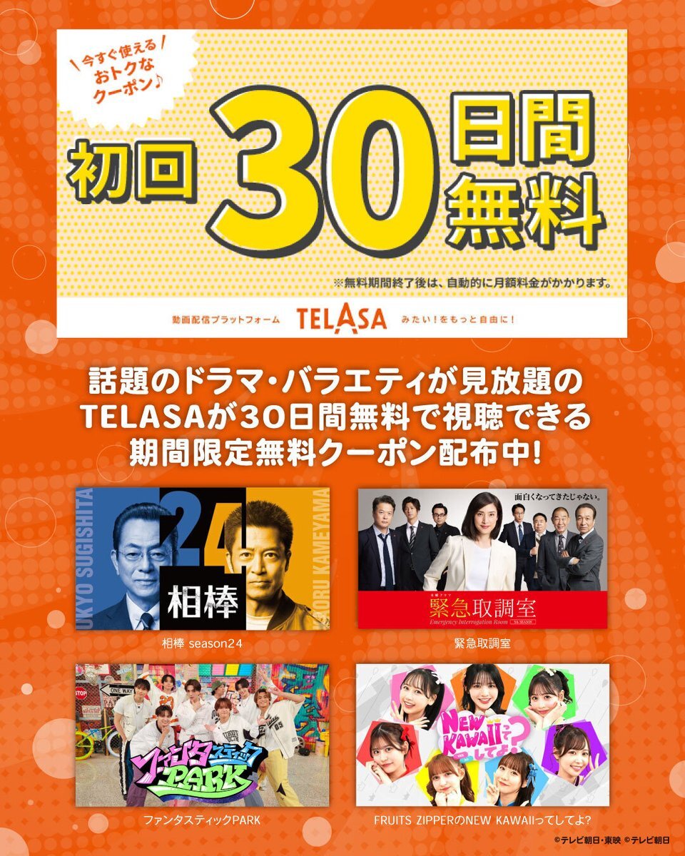 ⋱ 今すぐ使える! ⋰ おトクなクーポン配布中🎫 TELASA見放題プラン(月額990円税込)の au ID・TELASA IDでの初回加入が、 下記サイトからの新規会員登録で30日間無料✨ この機会に話題のドラマ、映画、アニメを楽しんじゃおう❣ 👇詳細はこちらをチェック! web.videopass.auone.jp/navi/cp30telas…