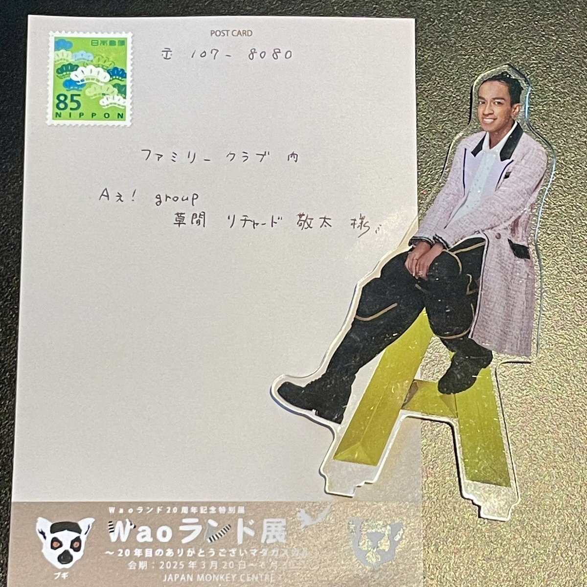 あっちこっちAぇ!のロケ地・犬山市のWAOランド(日本モンキーセンター)で「いつかリチャくんにファンレ書く時に使お😄🎶」と思って買ってたハガキ、使うなら今しかないと思ってファンレター書いたよ!(字は汚くてゴメンやで🥺) pic.x.com/a1WaTCLYYx