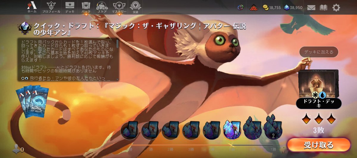 アバター!クイドラ!4回目! 青白!5-3! うおーー!青白決め打ちーー! 2/2/3のレア緑マナクリにめちゃくちゃされたりめちゃくちゃ完成度高いミシックさんの青赤にボコられたりしながらなんとか5勝!マジであと2勝のとこを反復横跳びしてるwwこれの次も負け勝ち勝ちでまたあと2勝!勝たせてー! pic.x.com/HeXZSaTWlO x.com/shugar76/statu…