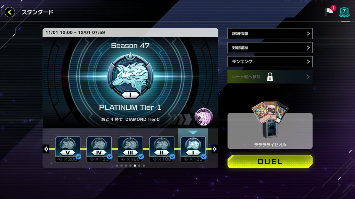なんなんだよマジで・・・ あと1回でDIAMONDって時に 《天盃龍》x3 《閃刀姫》x3 《閃刀天盃龍》x2 《ギミック・パペット》x4 が出てきてあと2勝→3→2→3→2→3→・・・3→2→3→4。 もういいや・・・・・ これから月初にランク上げよう。 pic.x.com/GTV8W3vGin