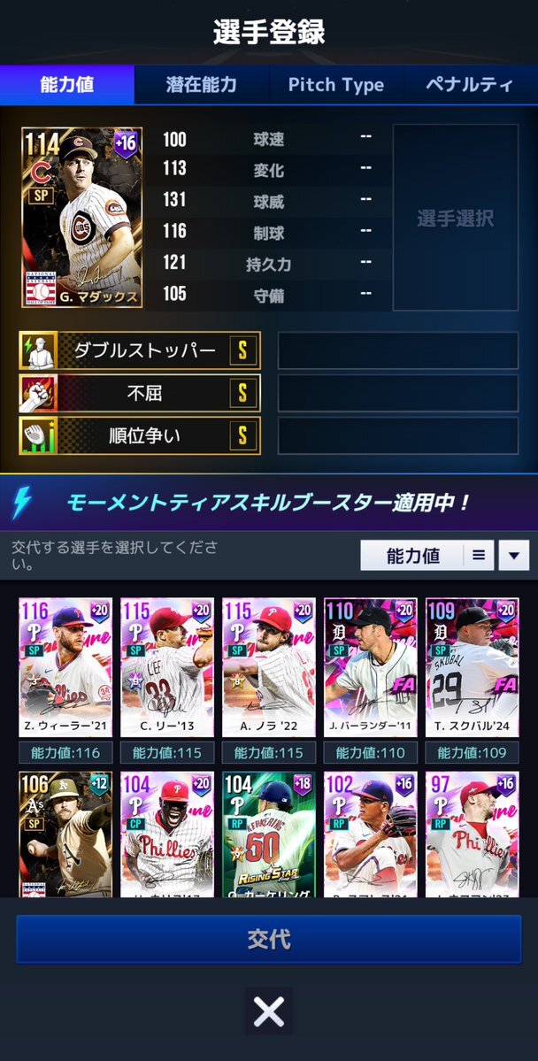 マダックスのダブルストッパーがリリーフ登板でまさかの発動中 あと2勝3奪三振で終わり🥵 なんか試合数の上限がおかしい? 今日からのはずなんだけど #MLBライバルズ pic.x.com/ZKzmoDLCLU