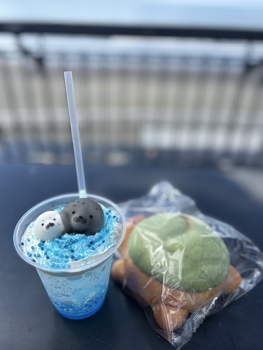 えのすいのアザラシソーダとカメメロンパン食べた後はいざ江ノ島!海人くんがLovin' youのMVの時に食べてたアイス最中とあの頃からわたしたちはでSOTAくんたちと食べてたしらすパン! ダイエット中なのにいっぱい食べたー😂 pic.x.com/WMtSitsElQ