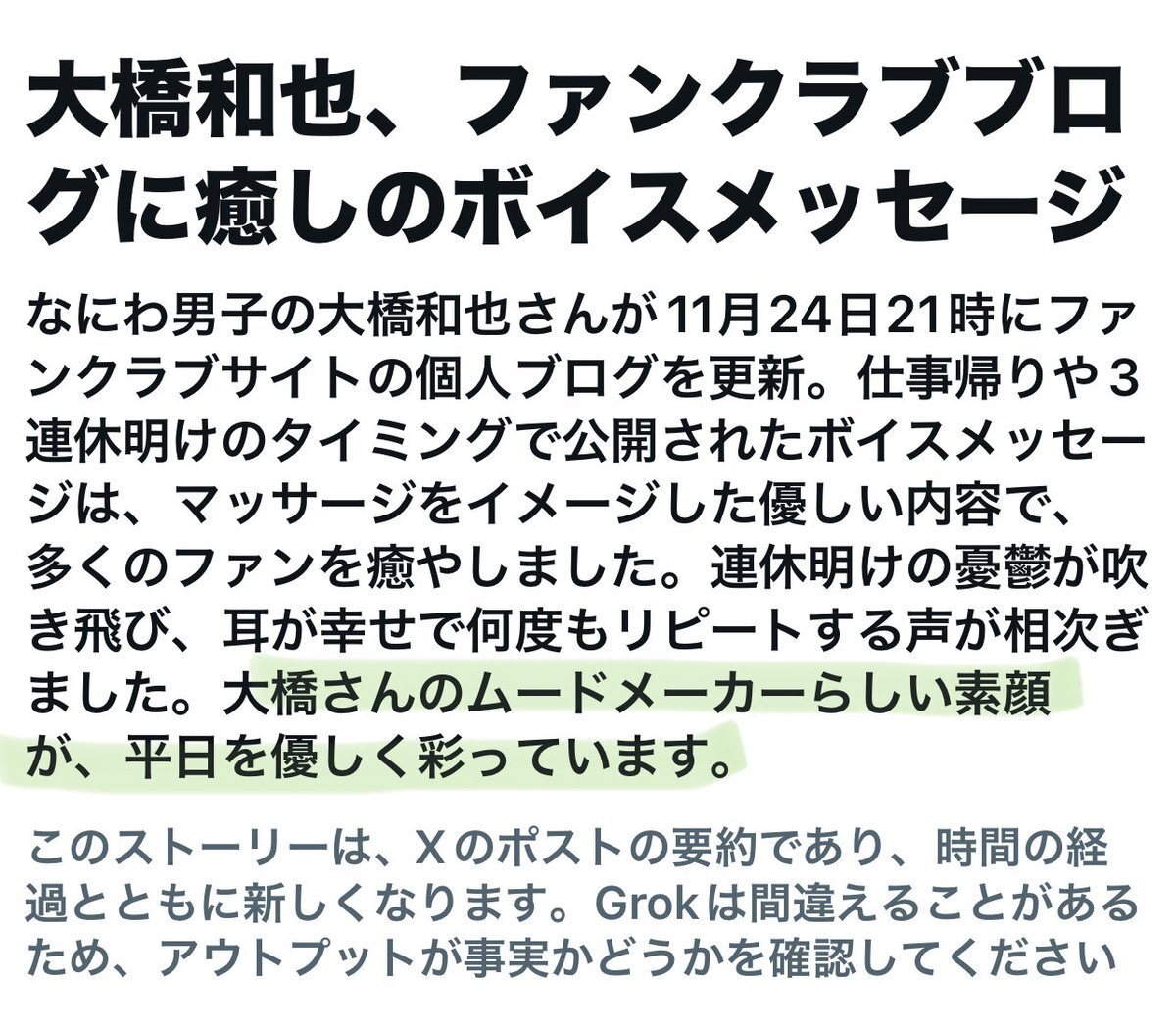 大橋くん、お疲れ様です🍵 遅くなったけどボイス更新してくれてありがとう🙇🏻‍♀️ 毎日お仕事終わりに聞かせてもらうね!! いつもありがとう。 かずくんが心の支えです( T_T )💚 #かずやのなんでもたいむ