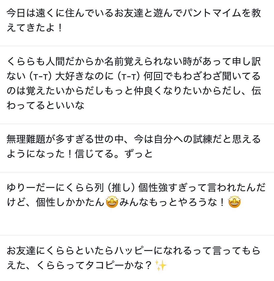 ①ファイトクラブ 今月のトピック①KOCお疲れ②Ⓜ️もお疲れ③まぐろ単独お疲れ④ 劇団相澤旗揚げ いっぱいお疲れ様 千田さんの検索履歴🔍「出島 ミュージカル」木の実ナナはすごいなぁ 企画のが〜まるちょば選手権面白すぎた 終わった後も何も発しない面々 鉄さん良かったけど、あれ多分Mr.ビーン pic.x.com/Cyj8tY2nAE