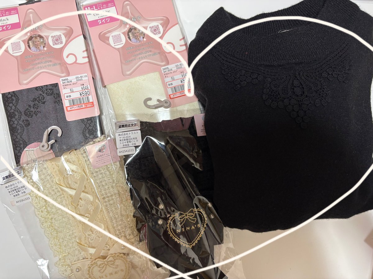 受け取り品① 桜子さんのタイツ🎀 可愛くて2色買いしちゃった♡黒はヘビロテの予感♡白は挑戦🥺 美沙子さんのヘドレ🧁 選べなくて2色😇レースが可愛いので甘いコーデに合わせたい♡ くる実さんのニット🧸 popupで予約したから届くの楽しみにしてたの♡早くゴブランジャンスカと合わせたい♡ pic.x.com/k2jIusoLju