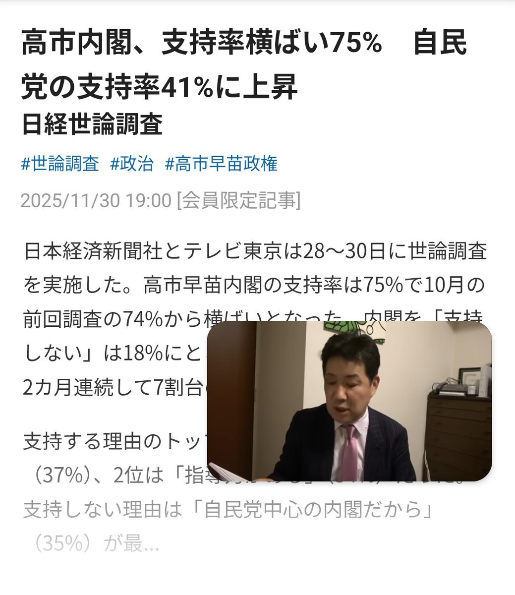 これが民意です🥺☕️ 親中公明が抜けて本当に良かったw 高市内閣、支持率横ばい75% 自民党の支持率41%に上昇 nikkei.com/article/DGXZQO…