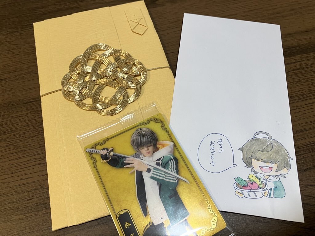 まさかのご祝儀袋に桑名くん入ってたしめっちゃ可愛いイラストでお祝いしてくれてほんと泣くありがとうございます、ご祝儀袋もこんな黄色の可愛いやつあるんやってなった😭💛 pic.x.com/LWhtXWTnhT x.com/k_b_n_j82/stat…