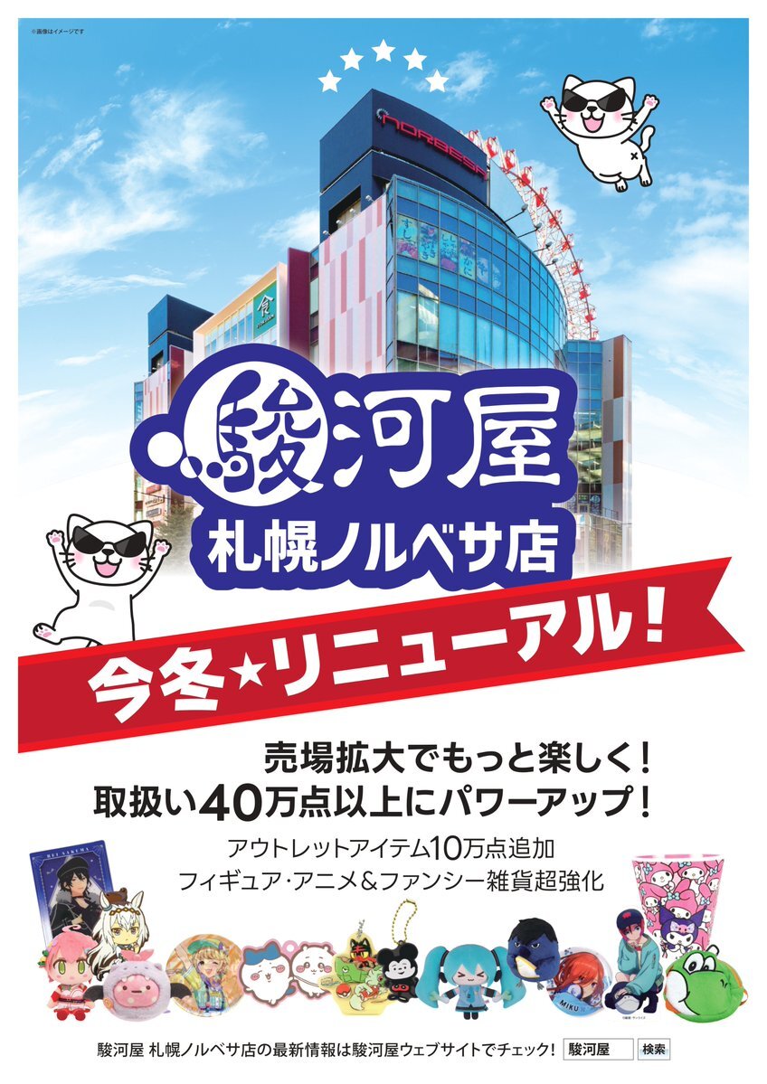 【お知らせ】 いつもご利用ありがとうございます✨ 駿河屋 札幌ノルベサ店は… \今冬リニューアル決定!!/(`・ω・´) 売場拡大&アイテム数もパワーアップ💪 アウトレット10万点追加🔥 フィギュア・アニメ・ファンシー雑貨も超強化! 新しくなる駿河屋にぜひご期待ください❄️ #駿河屋札幌ノルベサ店 pic.x.com/Txq00LCjDy