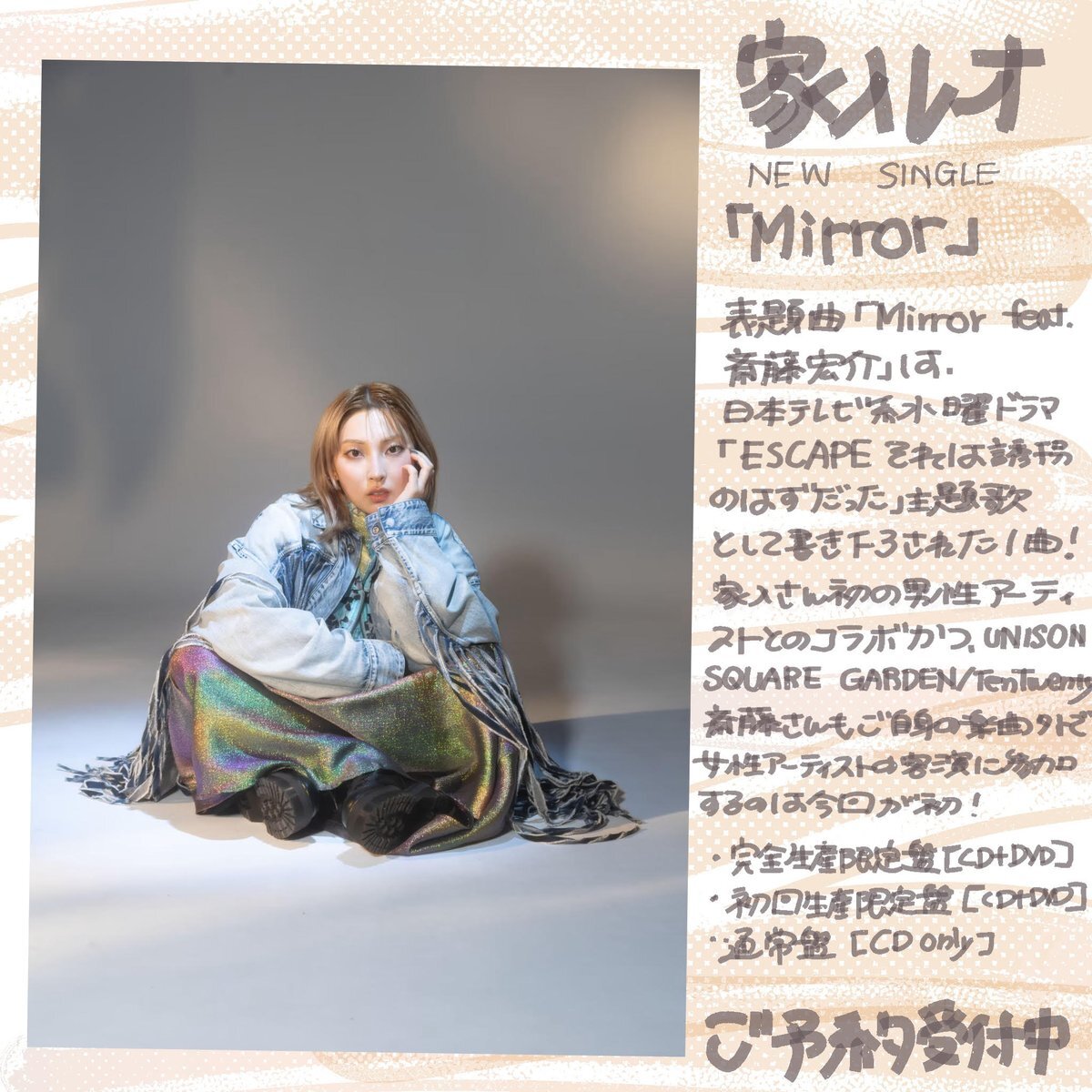 家入レオ、ドラマ『ESCAPE それは誘拐のはずだった』の主題歌 「Mirror feat.斎藤宏介」 10月8日(水)配信リリース&MV公開決定 [PR] Naked (通常盤) - ちゃんみな amzn.to/4f8uew7