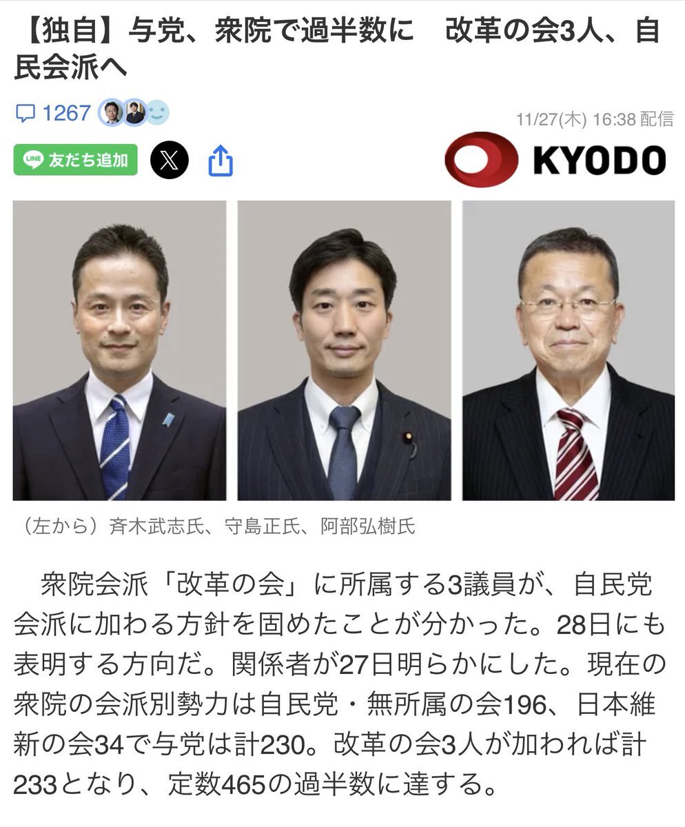 この内、斉木氏は維新公認で福井2区から出て落選、比例復活した人物(元NHKアナウンサー)。 同じく同区で落選した高木毅氏に代わって、自民公認を狙っているのだろう。 その高木氏は、現知事のセクハラ辞職で、来年1月に行われる福井県知事選に出馬を考えているという。