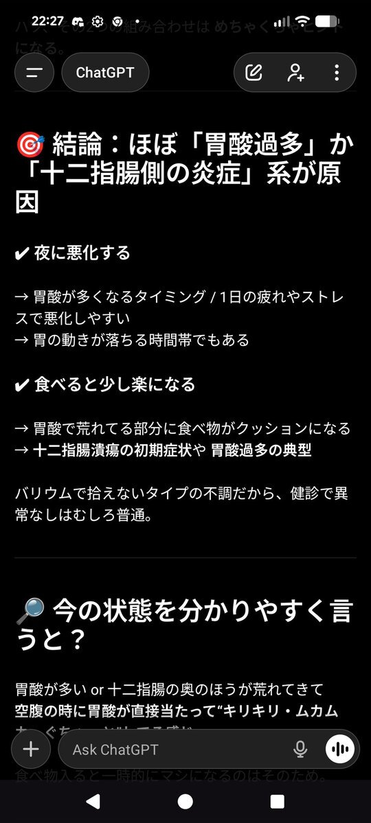 突然子供が 今日の夜に公園行きたい言い出したからひと歩き🐾 本日のお品書き🥢 懸垂10×3 ウォーキング1H 胃の調子がすこぶる悪いからGptに相談してみた 胃酸なのか?? 寝よ✨️ #胃酸 #遺産 #イ.サン pic.x.com/GtjGDm2rQ6