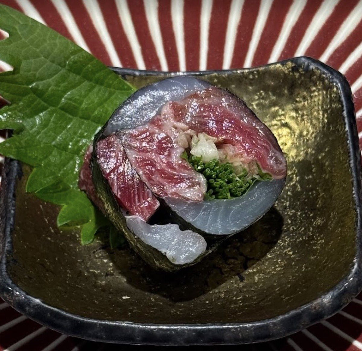 『極み』寿司馬光コース ひと皿の極み——ヒラメと馬肉の紫蘇芽ねぎ巻き。 鮮魚の甘みと馬肉の旨味に、紫蘇と芽ねぎの爽やかさ。 食感・香り・旨味が一体となった至高の逸品です。 📍大阪府大阪市北区曽根崎新地1丁目9-10谷安セドナビル 3階 📞06-6454-1330 #寿司 #北新地グルメ #大阪グルメ pic.x.com/8S3s5TYA9C