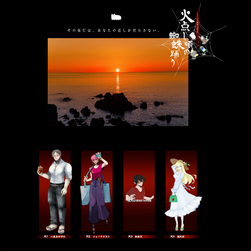 ▹▸ ー ー ー ー ー ー クトゥルフ神話TRPG 「火点し頃の蜘蛛踊り」 ー ー ー ー ー ー ◃◂ KP/ぬえ PC1 広兼 小鉄 / さばのひと PC2 八雲 燕 / 墓野 PC3 三得 保則 / ヨシヲ PC4 百合園 はるか / カル 全生還にてシナリオクリア 新しい蜘蛛踊りの形をみれた! pic.x.com/w0EkpQd3yj
