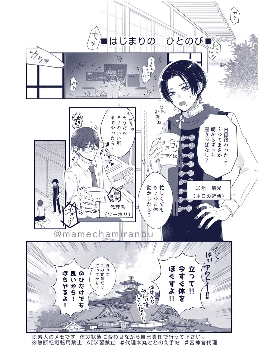 #審神者代理 #代理本丸ととのえ手帖 ととのえのスタートは、清光との“ひと伸び”にしてみました🌸 寒さで固まっている方は、無理のない範囲でゆっくり伸ばしてみてくださいね。 はじまりの ひとのび(1/3) pic.x.com/2jQ4WuT91A