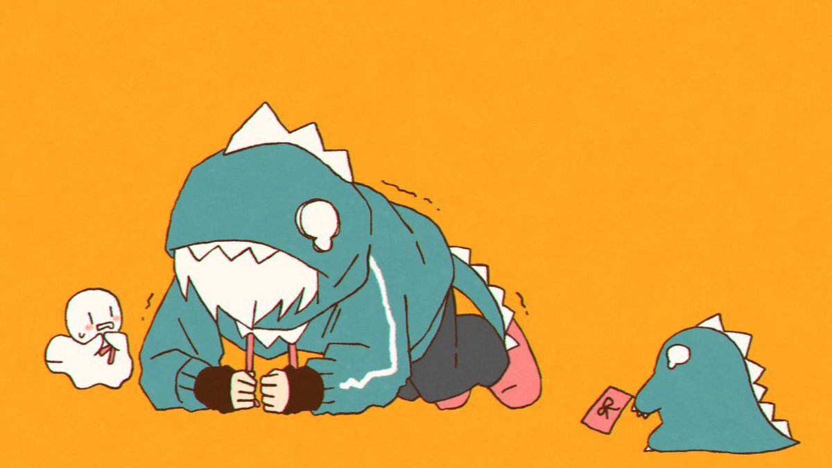返信先:@uni_mafumafuまふまふさんの曲では珍しめのポップなイラストですね! 涙目の恐竜がかわいいです! なにかに打ちひしがれるまふまふさんも可哀想でかわいらしい(*´∀`*) 明日が楽しみです お知らせありがとうございます!!