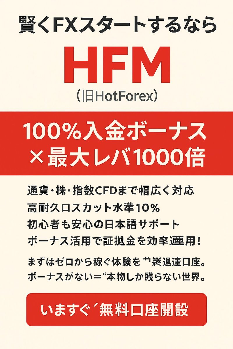 🔥【HFM(旧HotForex)】今だけチャンス! \100%入金ボーナス開催中💰/ ✅ 最大レバレッジ1000倍 ✅ ゼロカット&高耐久ロスカット水準 ✅ CFD対応で銘柄も豊富 ✅ 初心者にもやさしい日本語サポート FX+ボーナスで賢く運用したいならココ👇 👉 hfm.com/sv/jp/?refid=3#HFM #海外FX pic.x.com/xLxG22MlFP