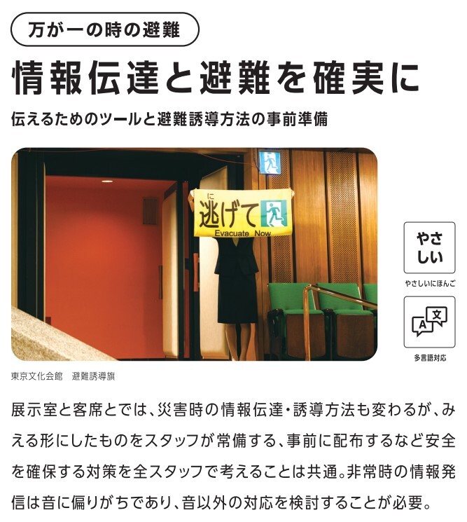 #鑑賞サポート 事始め vol.10】 ★情報伝達と避難を確実に★ 伝えるためのツールと避難誘導方法の事前準備。 誰もが芸術文化を楽しめる東京へ。公演・展覧会等で鑑賞サポートを実施中! awt.rekibun.or.jp #オールウェルカムTOKYO #デフリンピック #やさしい日本語 #多言語対応 pic.x.com/AEbMrVbRZn