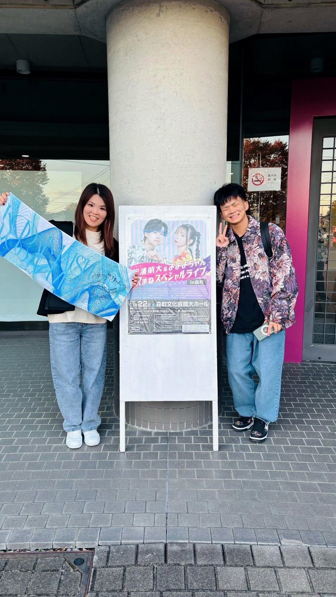 森町ありがとうございました!!🥰 コーレスとか曲終わりのリアクションとか、最初から最後までなんだかすっごくあったかくて嬉しかったな〜🥹♡でも水飲んだとき「フー!!」が出たのはさすがに新感覚すぎでした😹 また会おうね!約束!!💍✨ #松浦航大 さん #よよよちゃん pic.x.com/t3GfEhfhi2