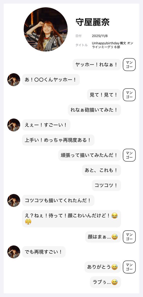 れなぁに今回この2つの絵を見せてれなぁ砲は喜んでくれた! しかし、2枚目のコツコツは笑いながら「こわい!」と冗談で怒られました…😅 #櫻坂46_UnhappyBD構文 #守屋麗奈 pic.x.com/pRZbMTV48j