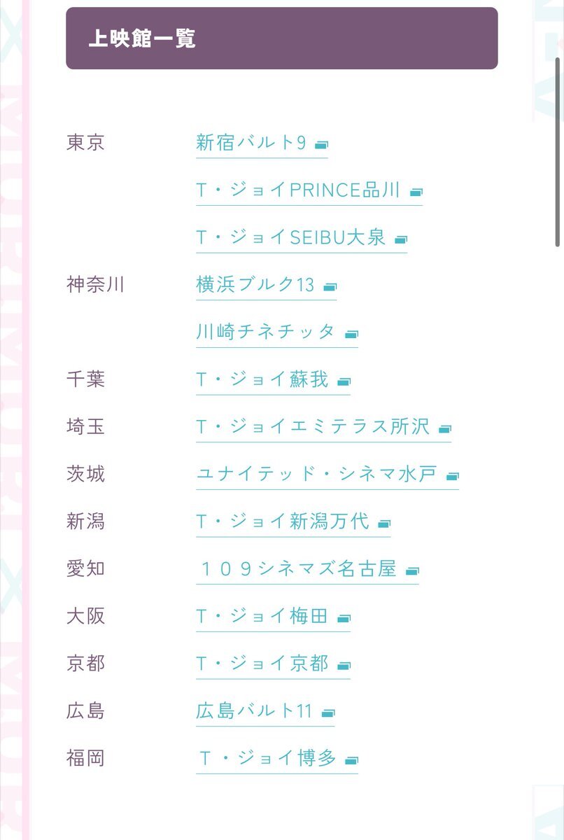 300館近く(295館)あるのに、複数回上映してるのはたった11館(21日から1回上映に) 最多は渋谷シネクイントの3回 2回ユナイテッド・シネマ アクアシティお台場 千葉シネマイクスピアリ 岐阜関シネックス マーゴ 静岡シネプラザサントムーン シネマサンシャイン下関  #movielovesong #映画ラブソング