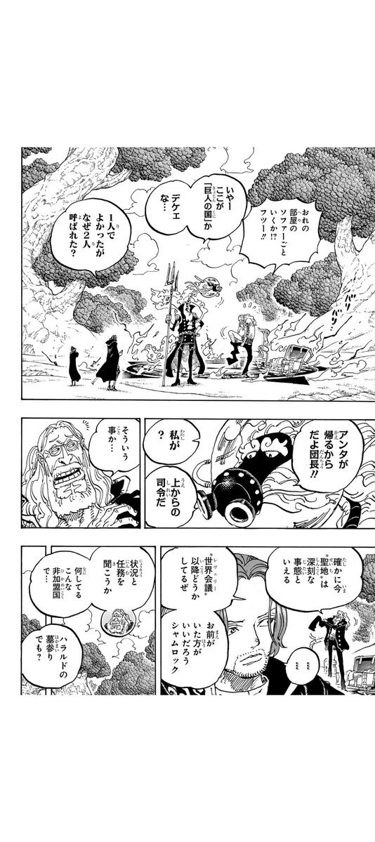 ONEPIECE エルバフ編 ソマーズ聖 (なんだ 休暇だぞ おれは) ガーリング聖 (エルバフへ迎え) ソマーズ聖 (ん!? ちょっと待て) ガーリング聖 (すぐ行けるだろ) ソマーズ聖 (いやァ あるだろ) ソマーズ聖 (着替えとかさ 準備がよ) ソマーズ聖 (もしもし!? ガーリング!)