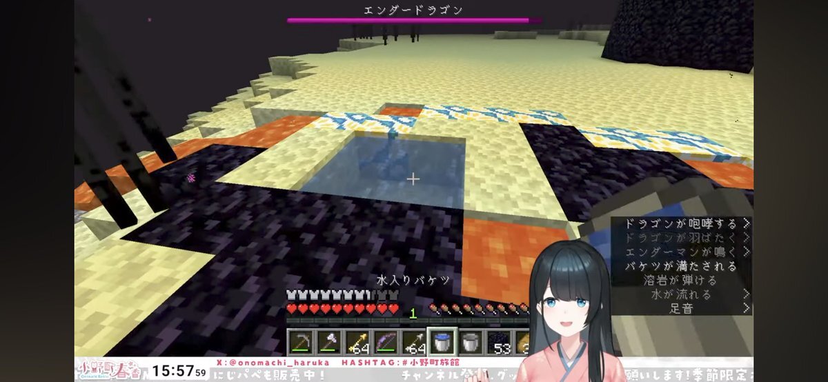 〚Minecraft〛足元がマグマになる世界でエンドラ討伐10 おつはるさまでした! エンパ集めを無事完了させてエンド要塞へ。 ポータル開通はもちろん通過までもこの世界だと難儀だけど、横から突入の発想天才でした✨️ エンドラ討伐の下準備は整いいざ決戦へ!次回楽しみにしています!! #小野町旅館 pic.x.com/XG37yozvp6