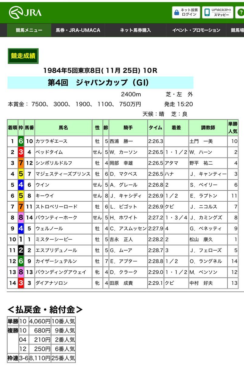(雑記)おはようございます。 今日も一日… 今日はジャパンカップ。 ということでお馬さんのカツラギエースを。海外馬のみならず、ミスターシービー、シンボリルドルフを下しての大逃げ勝利。さすがにかっこよすぎますね。 pic.x.com/rYutqeqYP4