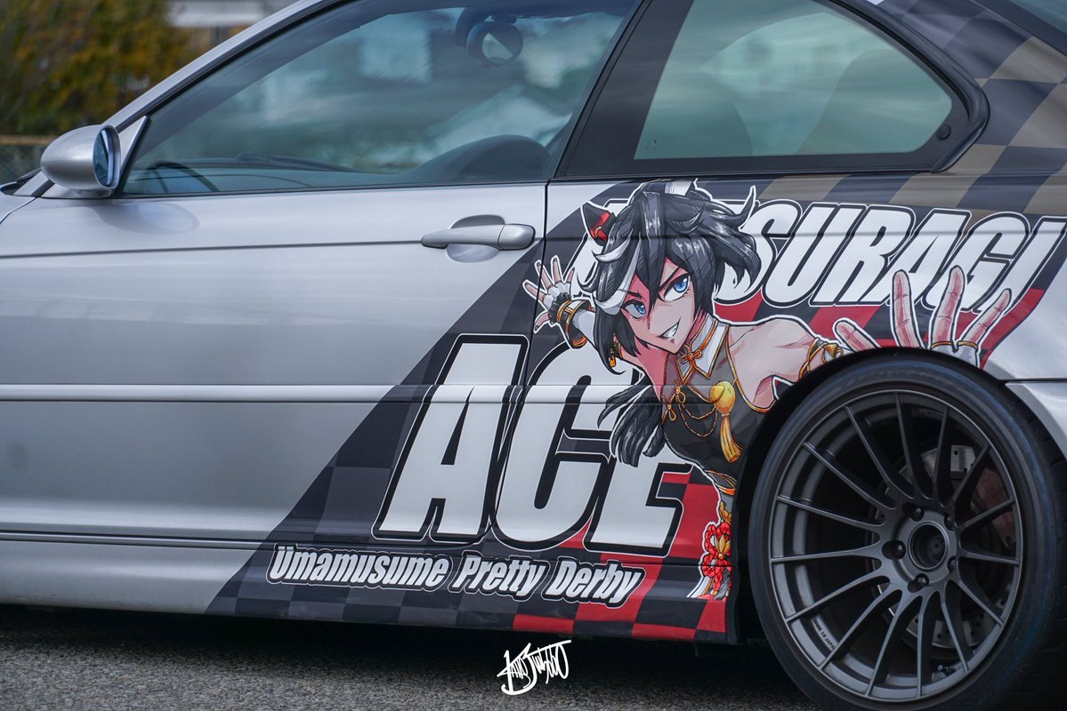 正直M3買った時は痛車にまでするつもりは無かったし、いざ「やってみたい」と思ってもキャラとクルマのマッチングとか色々迷ったりでなかなか踏み切れなかったけど、「M3を買って“3年目の秋”」であり「カツラギエースが勝ったジャパンカップ」の日という事でご報告とさせていただきました。