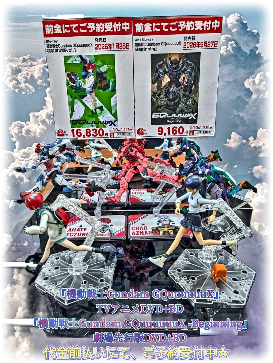 ☆ご予約受付中☆ 2026年5月27日発売予定の 『機動戦士Gundam GQuuuuuuX』 TVアニメ版ならびに劇場先行版DVD&BDの ご予約を本館7階映像ソフト売場にて受付中🎵 特典付きの商品などもありますのでお早めに❗️ またいつか会えるってガンダムが言っている✨ ➡yodobashi.com/product/100000… pic.x.com/99YnpCIrcX