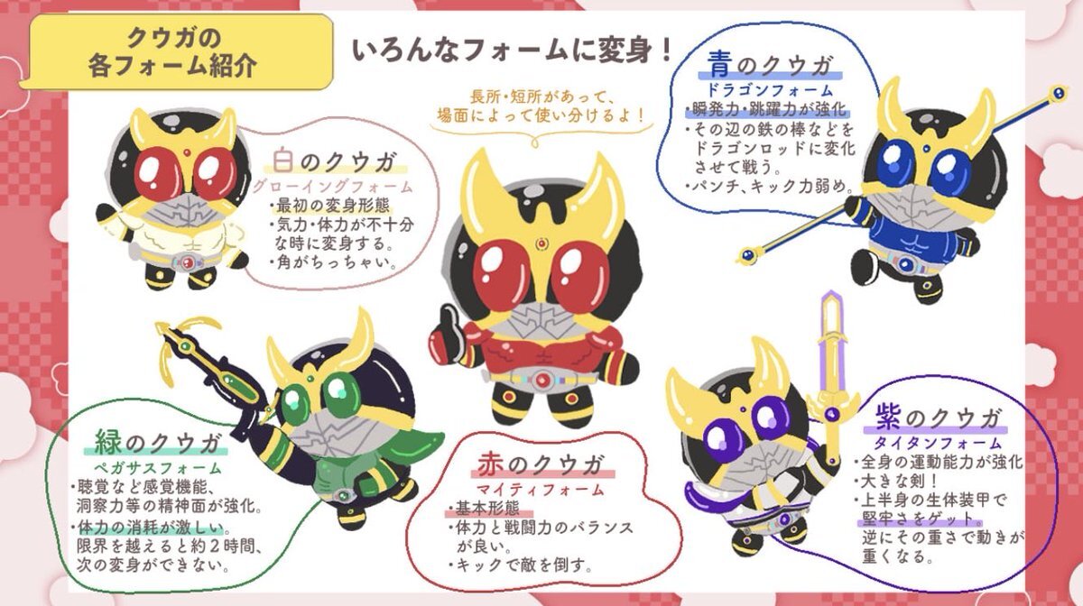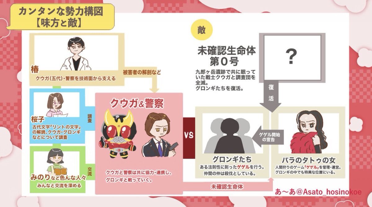 (続き) 仲間や勢力図、変身フォーム! 作中では色んなフォームのクウガは「〇〇(色名)のクウガ」って呼ばれるので、実際同じことがあったらそうするだろうなと見ていてリアルだ〜と思いました。 ここで紹介出来なかった他の頼もしい仲間たちはぜひ本編で!皆信念があってかっこいいぞ!! pic.x.com/x7TWVh4ZaT