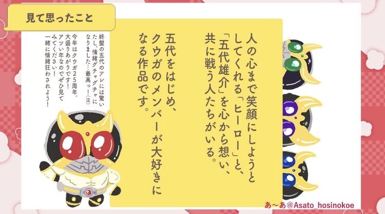 (最後!) 五代が、仲間たちが、クウガのみんながだいすきです。最後まで観て、根強い人気の理由が分かりました。 みんな本当にかっこいい!!!!!! この作品はめちゃくちゃ「熱い」です!!!!ぜひ観てみて下さい!一緒に情緒狂わされようぜ!!!!!!!!!! pic.x.com/7dbHHsjlJs