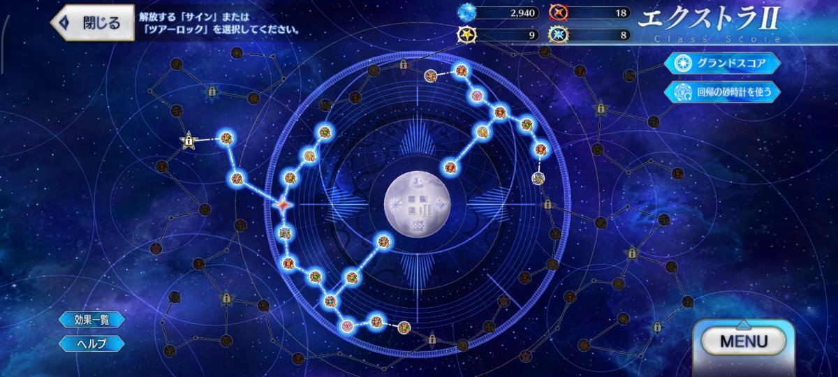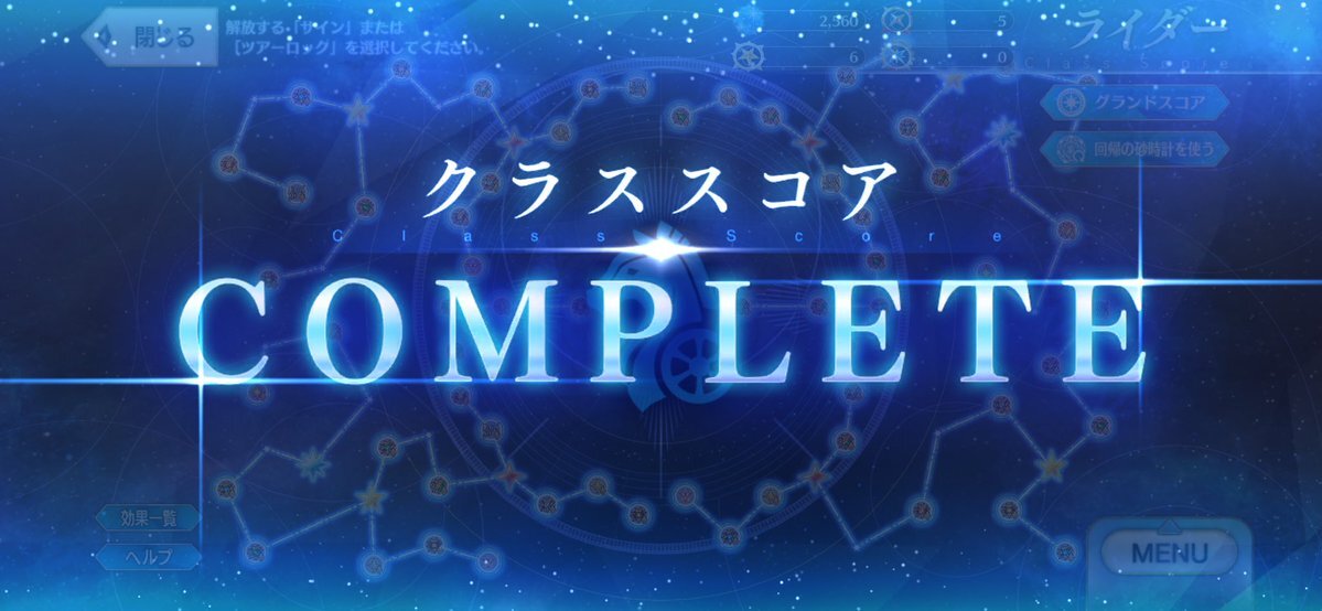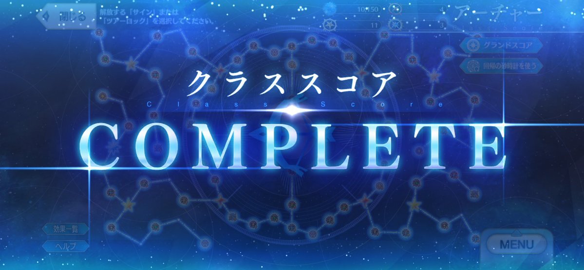 FGOのクラススコア、開けられるとこは全部あけた。あと極星のトーチ2つで全部あくのかな?