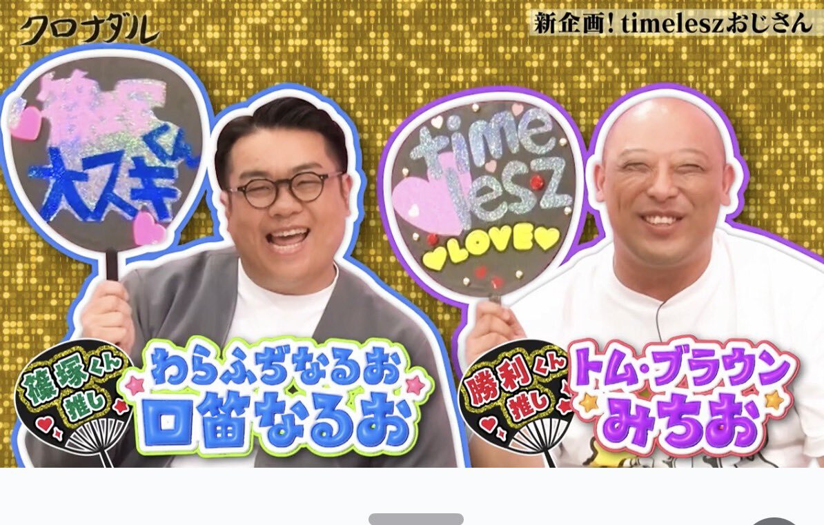 timeleszおじさん! クロナダル #TVer で無料配信中! ↓ tver.jp/episodes/epz7v… timeleszにどハマりしてしまったおじさん芸人2人がtimeleszのスゴさを伝えることが出来るのか!? #クロちゃん #ナダル #クロナダル #timelesz #タイムレス #トム・ブラウン #口笛なるお