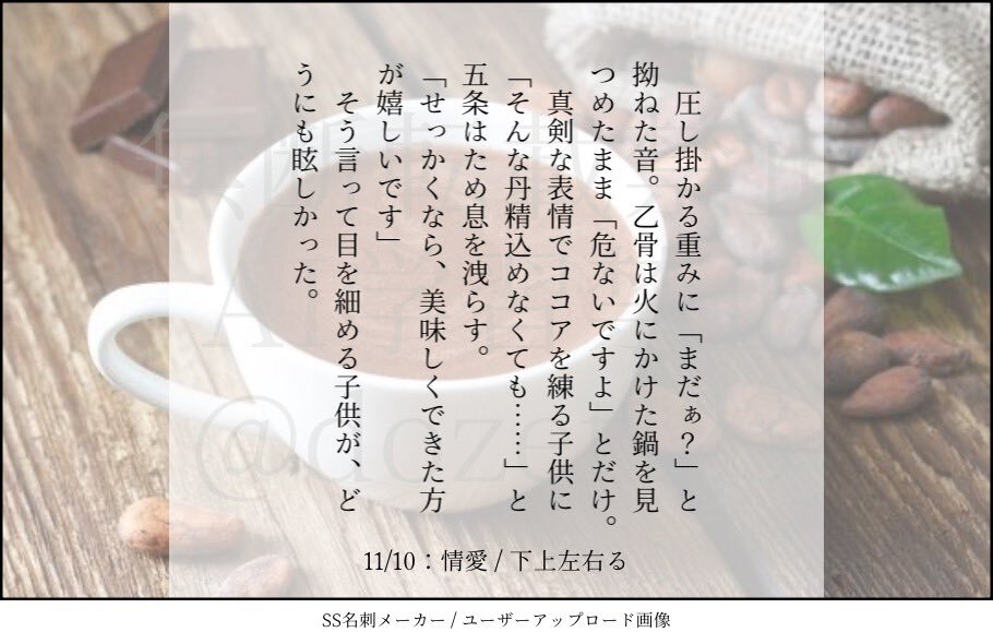 情愛 / 五乙 11/7がココアの日だったらしいので☕️ グルメブ~ムを経て細かいところまで拘る乙クンがいたら可愛い pic.x.com/qvkz48gmVi