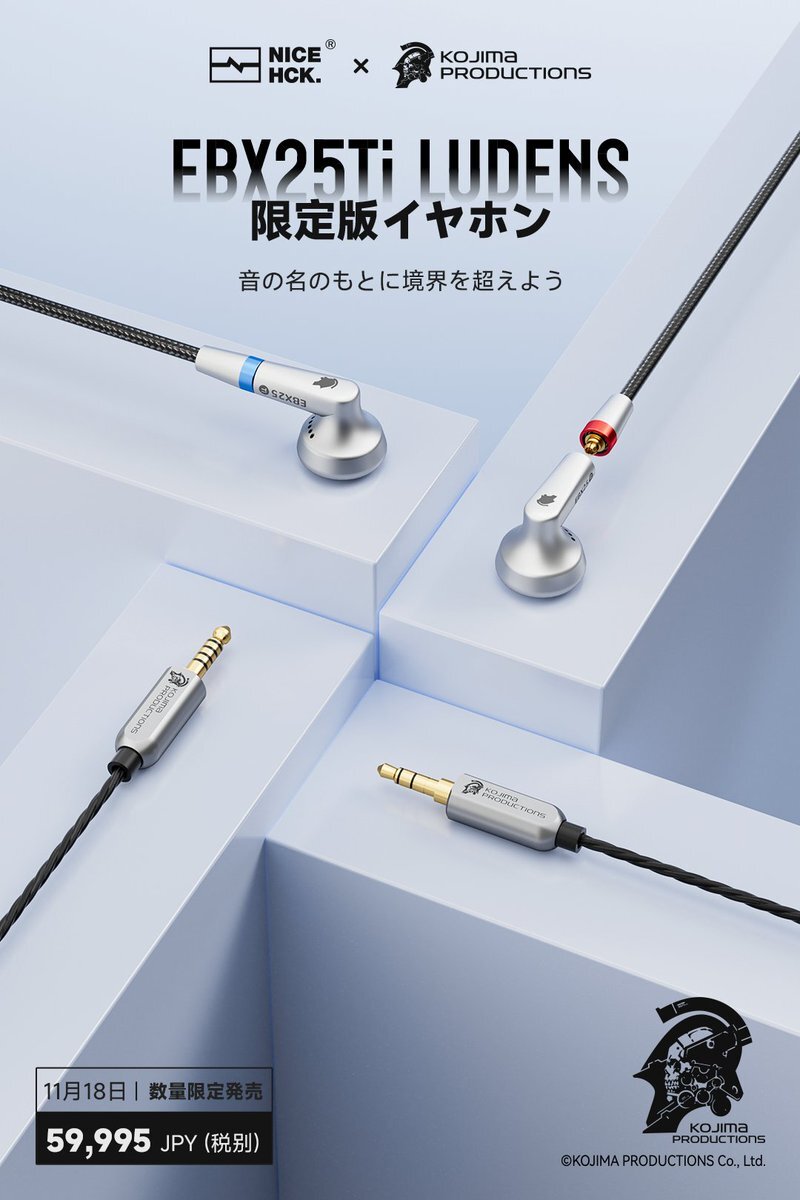 KOJIMA PRODUCTIONSと共に、音楽本来の姿を追い求める🎊 NICEHCK EBX25Ti LUDENS 限定版イヤホン🎵 これは、勇気への応え、音楽への揺るぎない追求。 真の音楽を愛するあなたのために作られました。 NICEHCK × KOJIMA PRODUCTIONSコラボ限定版イヤホン🎶 JST
