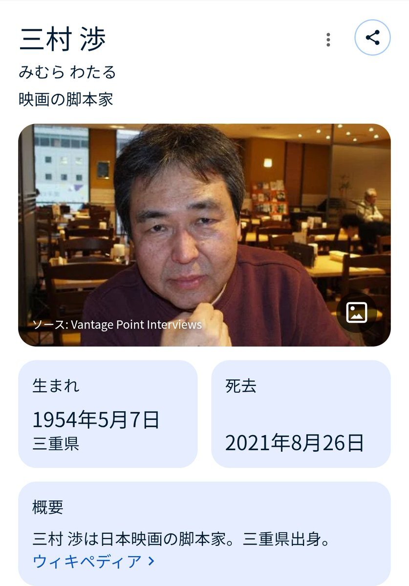 返信先:@novinovi_zゴジラVSメカゴジラ』脚本の三村渉のプロフィールで必ず言及されてる作品、の印象です。故人なんですね pic.x.com/FbTBvZHuT9